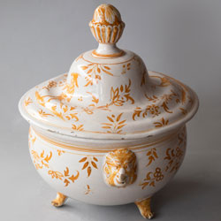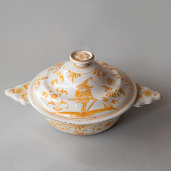 18TH CENTURY FAÏENCE SOUP BOWL AND LID DECORATED IN YELLOW OCHRE |
