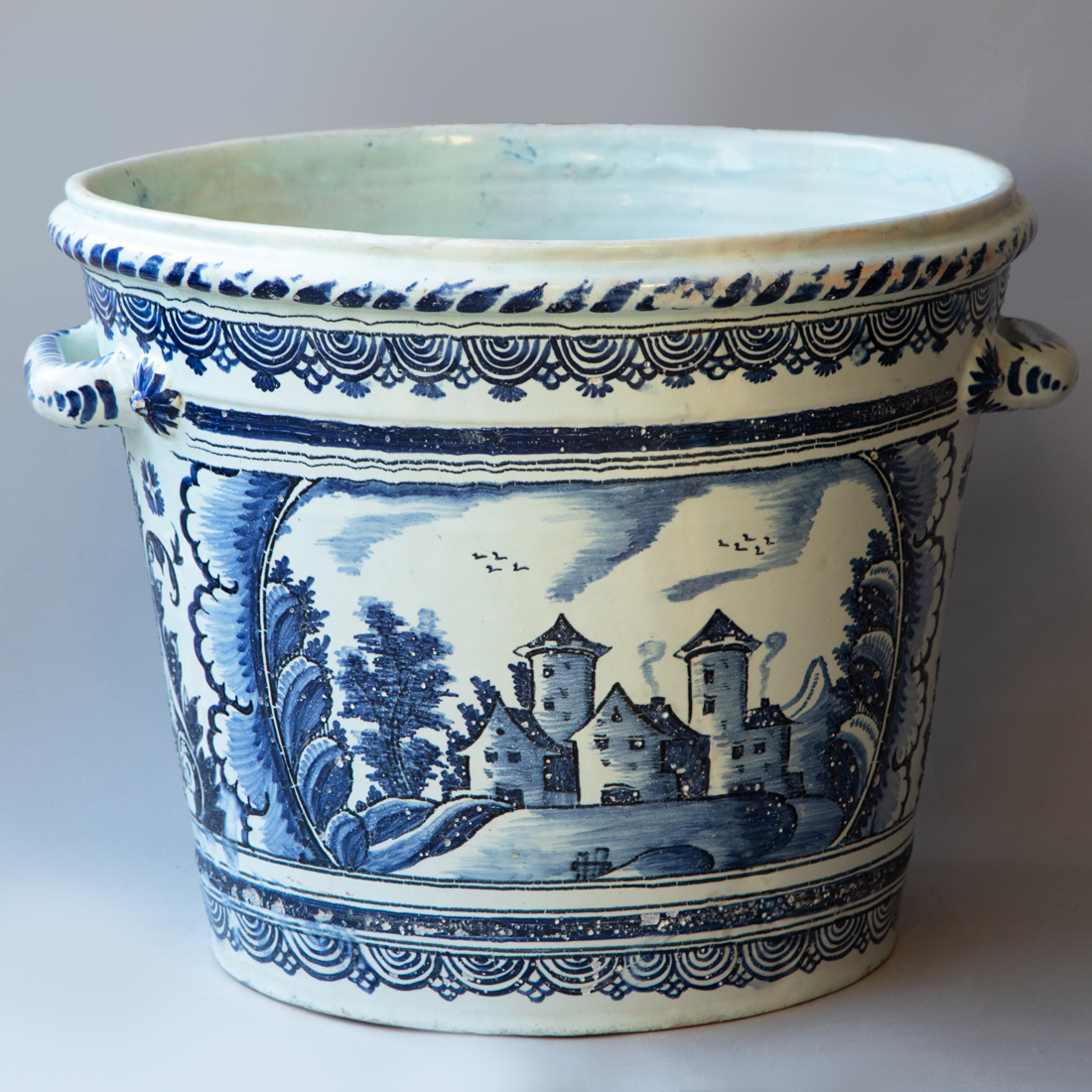 Decorated in cobalt blue on a white background.