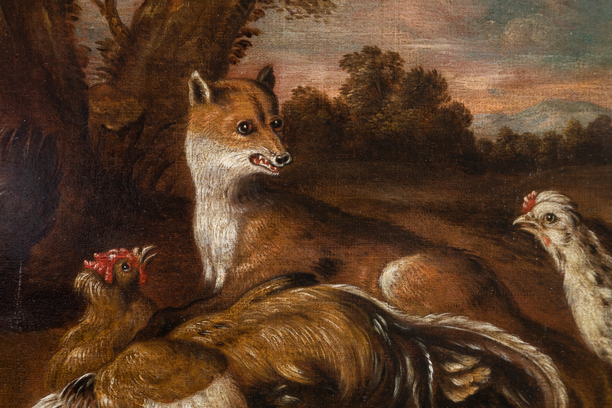 BY FOLLOWERS OF JAN FYT, REYNAUD LEVIEUX, MELCHIOR D'HONDECOETER AND FRANS SNYDERS Depicting a bird concert; a spaniel and a parrot; a peacock, a turkey and hens; a fox among hens.