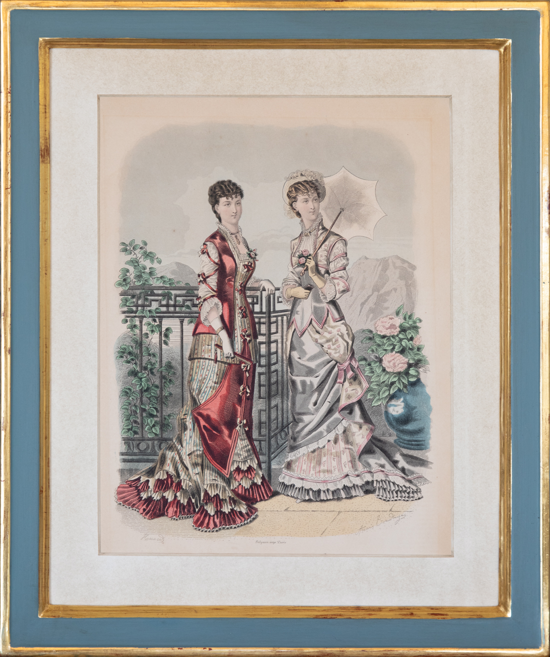 SET OF SIX 19th CENTURY FRAMED HAND COLOURED LITHOGRAPHS Le Moniteur de la Mode, France c.1880