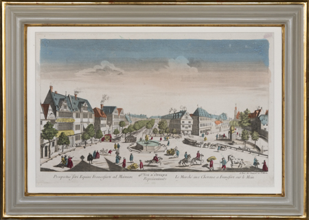 Copper plate engravings with excellent original hand colouring. Various views of Frankfurt, Vienna, Turin, Venice, Rome, Naples, Florence, Versailles and Paris.